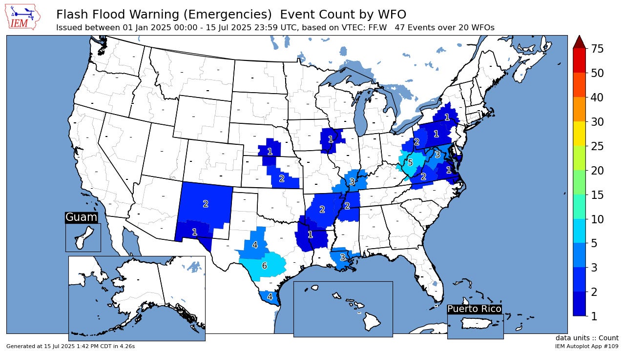 Through July 15, 2025 ranks second for the number of flash flood emergencies across the country in any given year.