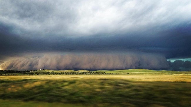 Shelf cloud ahead of the Killdeer, North Dakota, hailstorm on July 10, 2016.