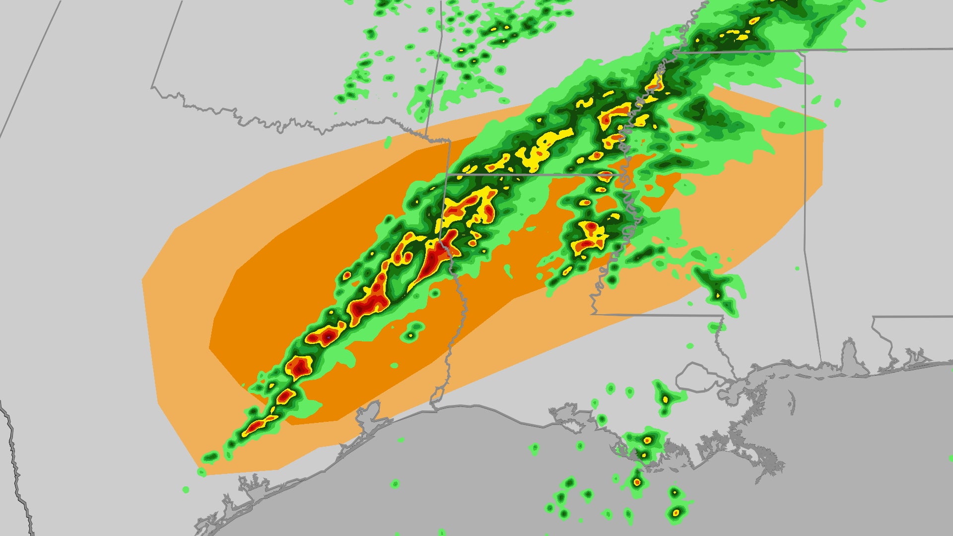 A line of showers and storms will expand in coverage as it moves east across Texas on Monday. A few severe storms will be possible in places like Waco, Austin, Houston and Shreveport. Damaging winds, large hail and a few tornadoes will all be possible. Heavy rain could lead to flooding as 1-3 inches look likely with isolated totals as high as 4 inches. The flood threat will continue overnight as the heaviest rain moves east into Arkansas, Louisiana and Mississippi. Watch this video for the latest update.