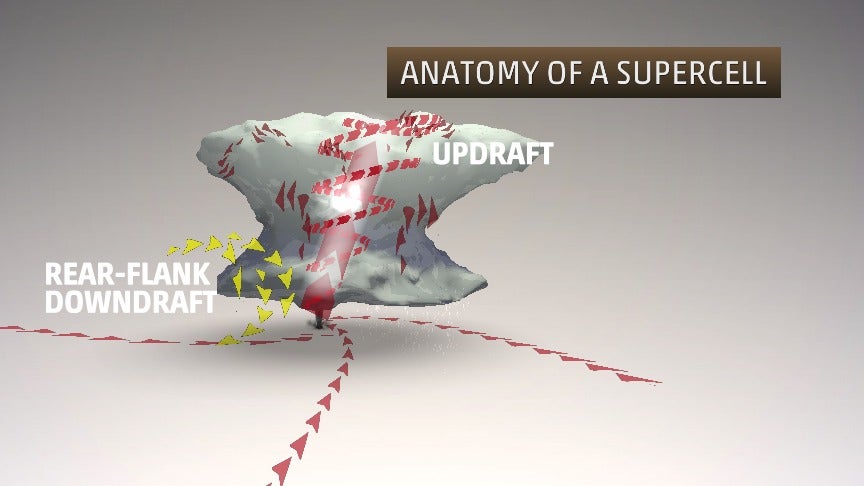 Schematic of a supercell's rear-flank downdraft and updraft.