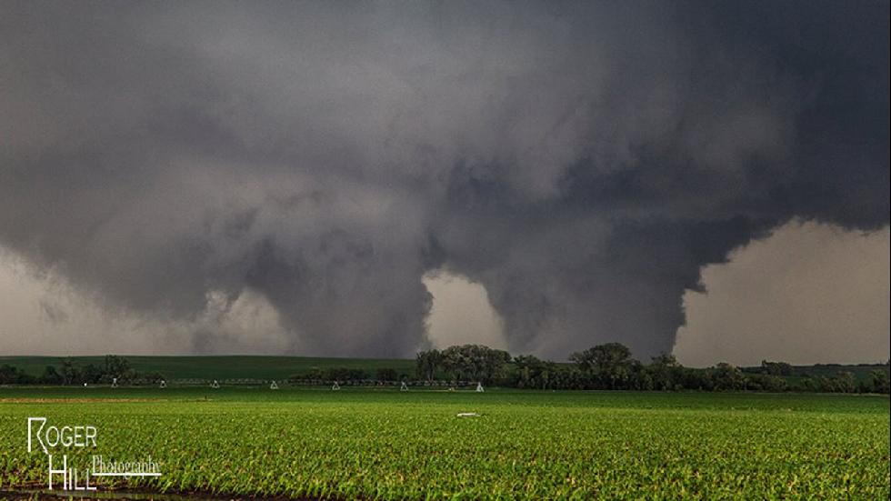 Twin tornadoes photographed near Pilger, Nebraska on June 16, 2014.