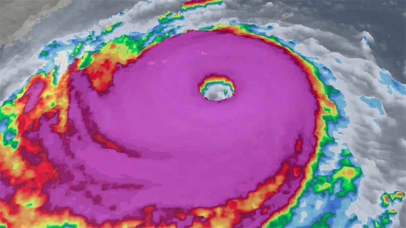 An infrared satellite image of Dujuan and its large eye on Sunday.
