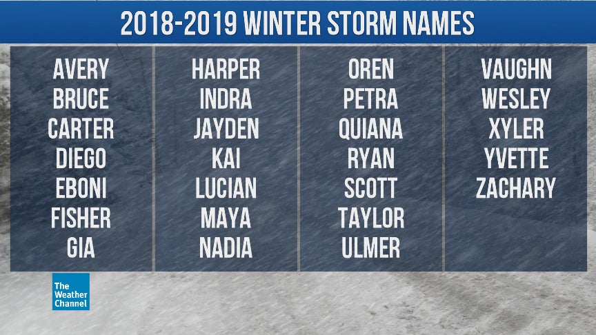The Weather Channel and weather.com released the 2018-19 winter storm names list Tuesday, marking the seventh season of naming winter storms.