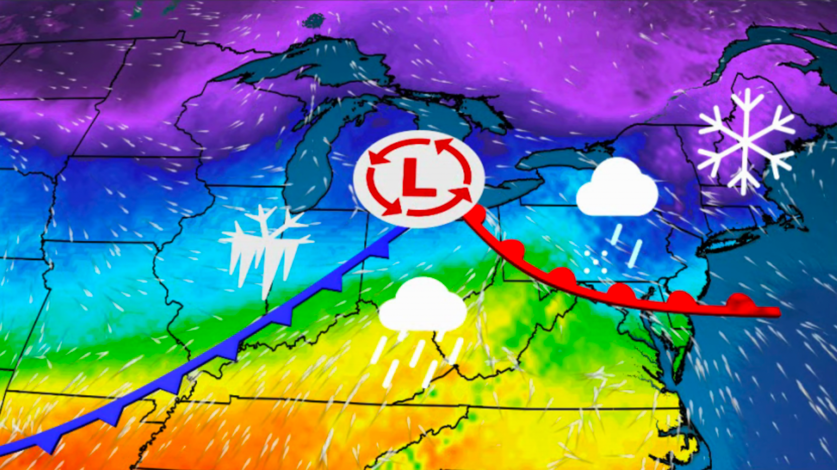 It will be a snowy, icy week across the Midwest and Northeast as two winter storms barrel through these areas in quick succession. Cities like Chicago, Indianapolis, Columbus, New York, Boston, Pittsburgh, Washington, D.C., and Baltimore will feel the one-two winter punch midweek into the weekend. Here’s what you can expect and when.