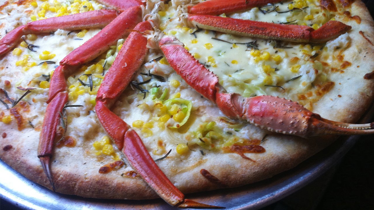 Biggest Crowd-Pleaser: Get the Crab Leg Pizza, which comes with a basil and thyme cream sauce, fresh crab meat, fresh corn, leeks and mozzarella. It’s topped off with a whole crab leg.