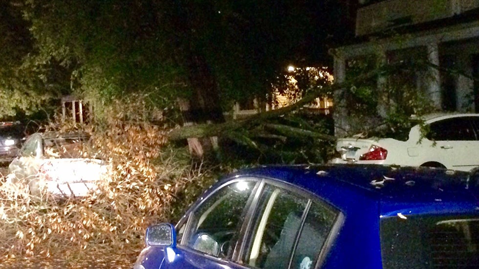 Trees and wires were downed in several locations in eastern Massachusetts, including New Bedford, Fall River, Acushnet and Barrington, as well as in Lamoine and Stonington, Maine.