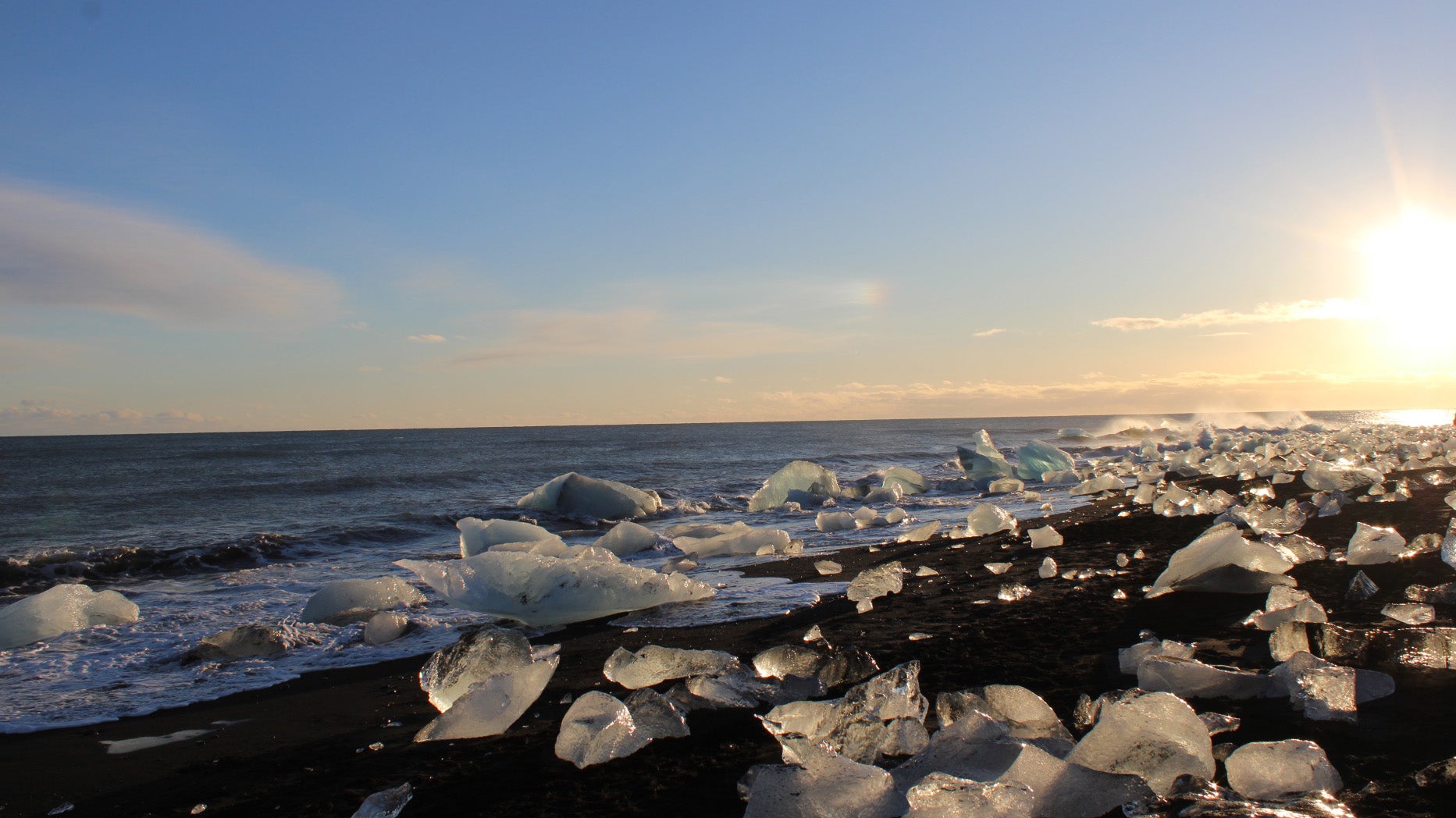 Icebergs from the nearby Jokulsarlon Glacier Lagoon wash ashore here, creating a dazzling display against the black sand beach.