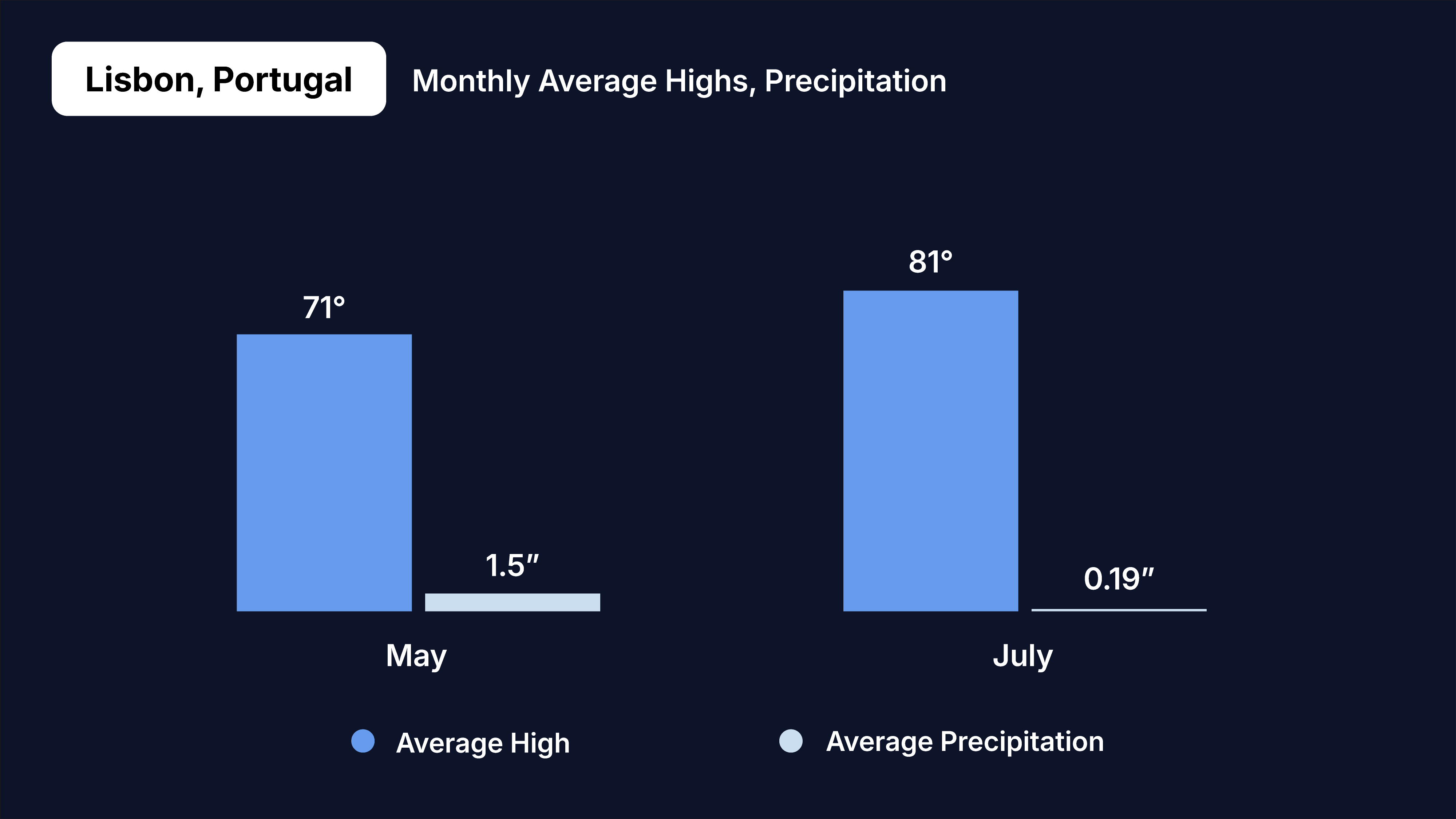 Typically, highs linger in the 70s with lows in the upper 50s this time of year (hello, ideal weather!) which by far beats out the searing 90s the city normally sees by July.