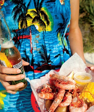 Something happens to people, and to the way they eat, near bodies of water. The beer gets hoppier, the polos brighter, the puns cornier. (In Chesapeake Bay I spotted five don’t bother me, i’m feeling crabby T-shirts in as many days.) Women let their hair down; men grow goatees and start dressing like Jimmy Buffett. Maybe they’ll wear a pirate-motif bandanna. Maybe they’ll tie one on their dog. To a nonbeliever this all might come off as kitsch, but there’s nothing ironic about it. Seafood shacks are the furthest thing from hipster-cool, and that’s precisely what makes them so appealing. The lobster traps may be decorative, but the sincerity is genuine.